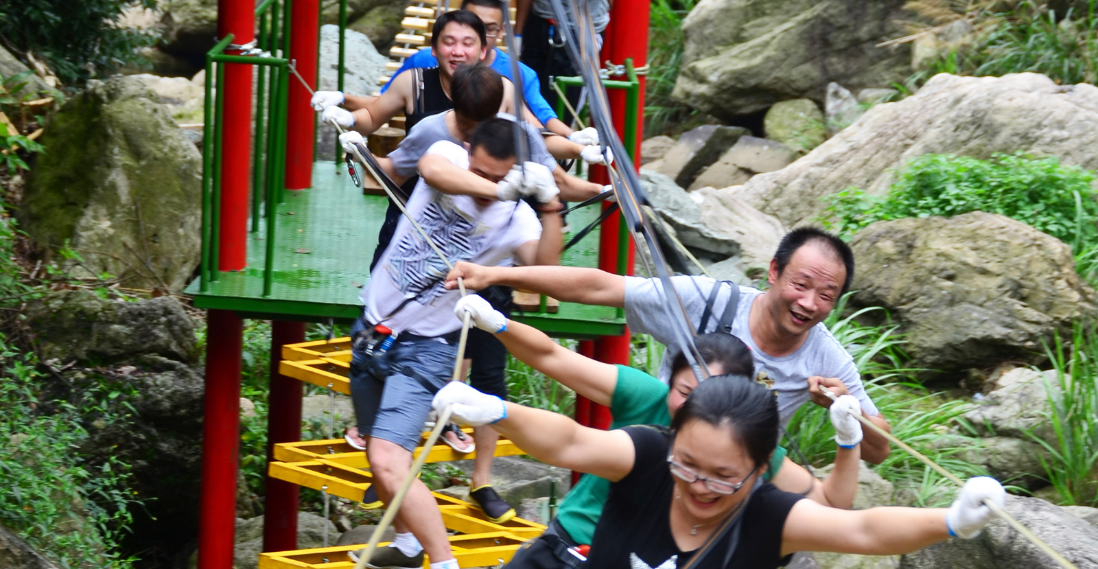 【龍井峽闖關(guān)】在峽谷中穿越玩驚險(xiǎn)刺激的戶外拓展。從美食街吊腳樓前開(kāi)始,沿峽谷建造了大型拓展項(xiàng)目,